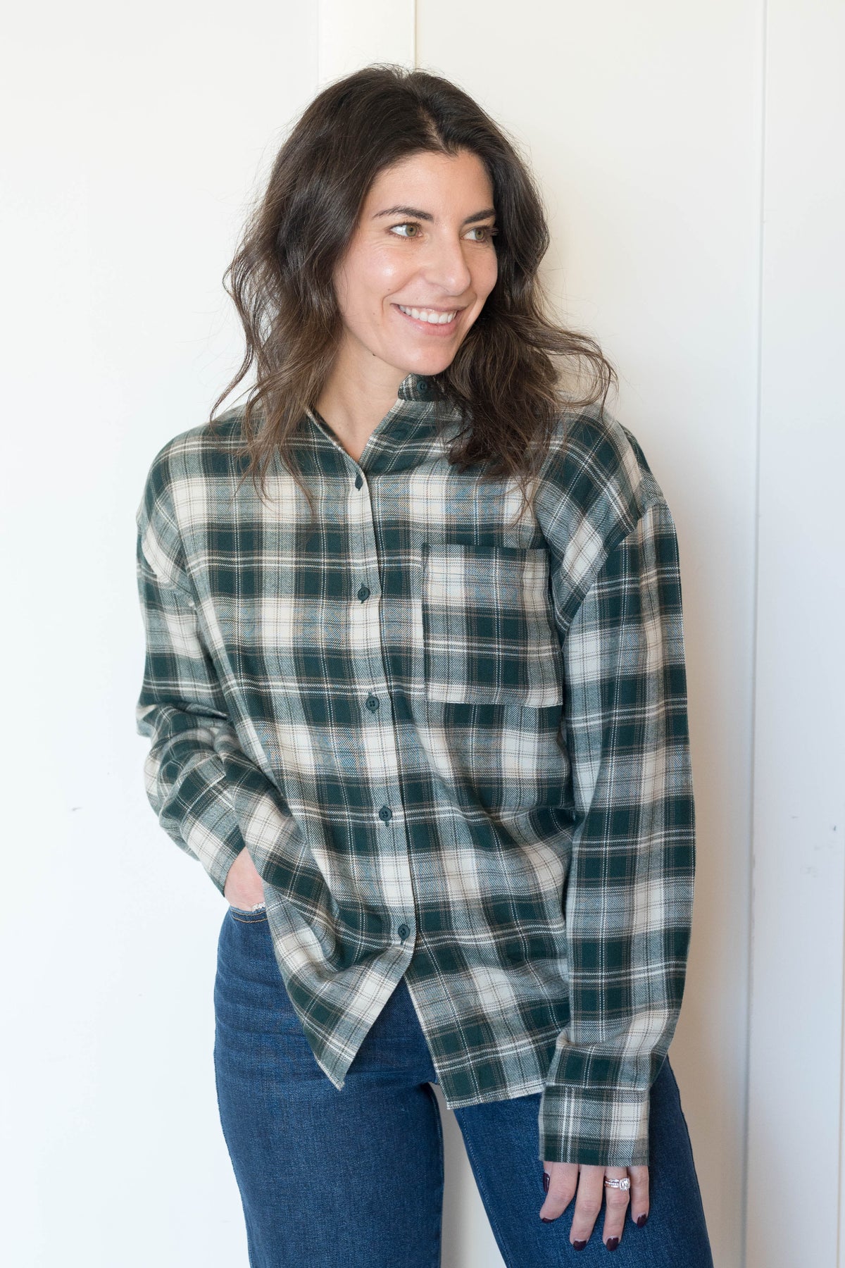 Embrace casual comfort with our plaid button-front top, perfect for layering open over a tee or wearing buttoned up. Made from buttery soft flannel fabric, this relaxed piece feels like a well-loved favorite from the first wear.