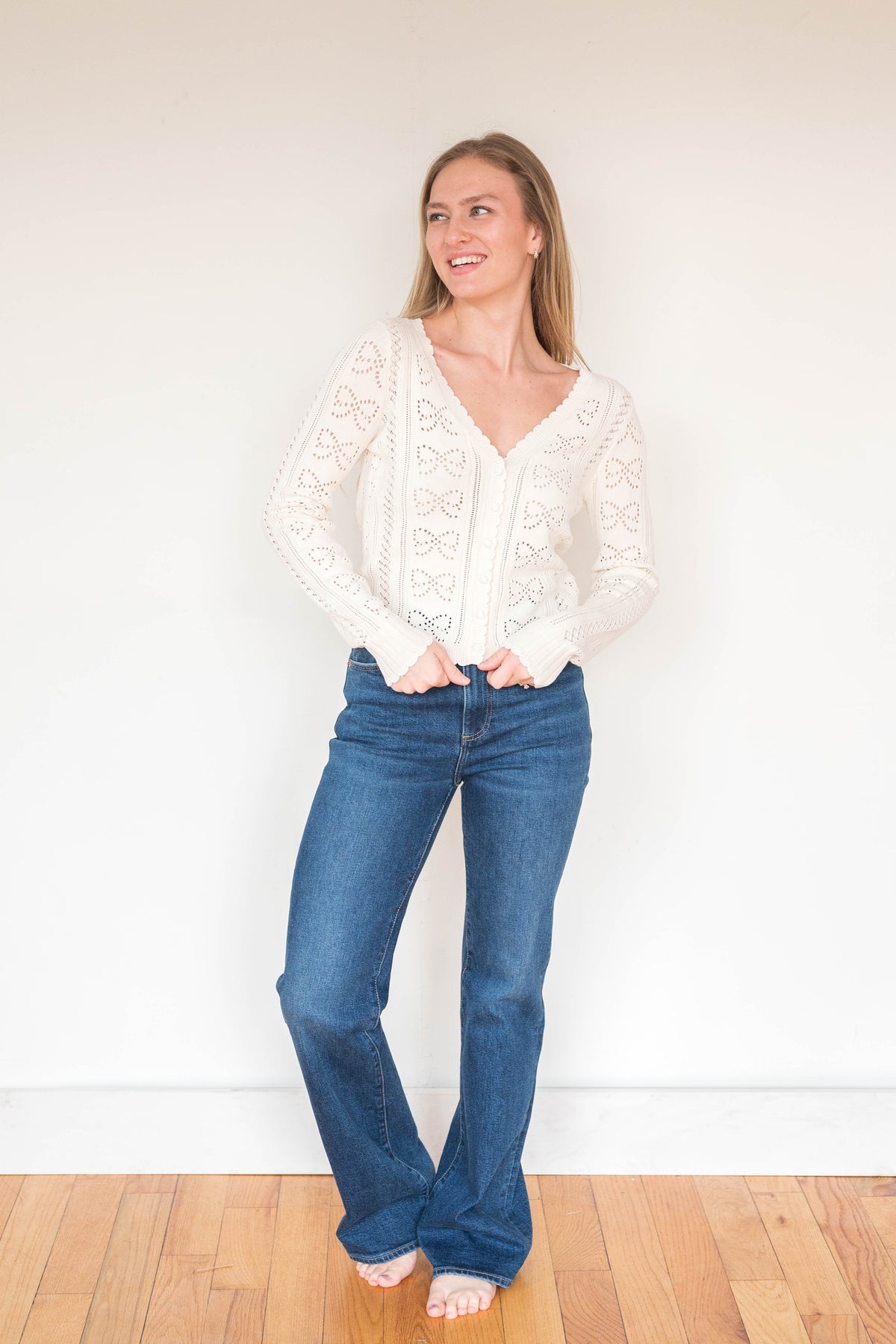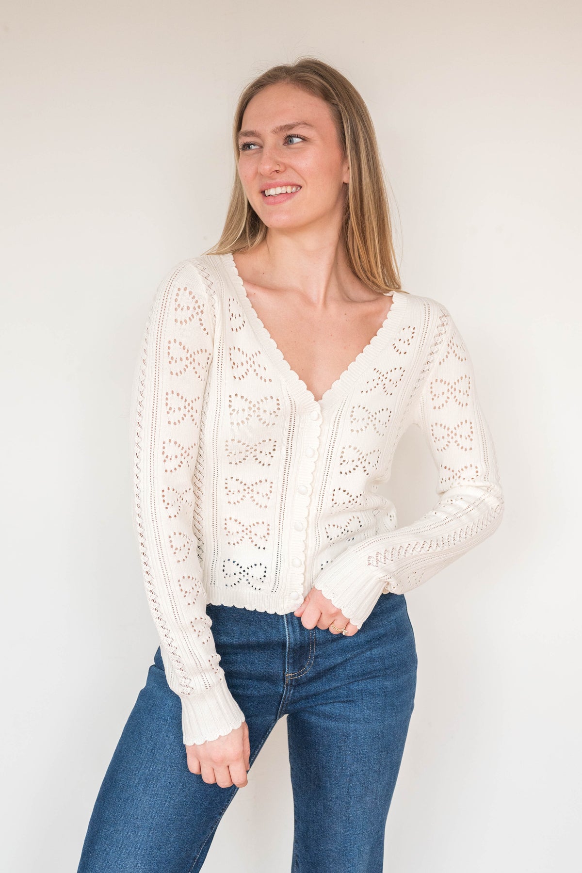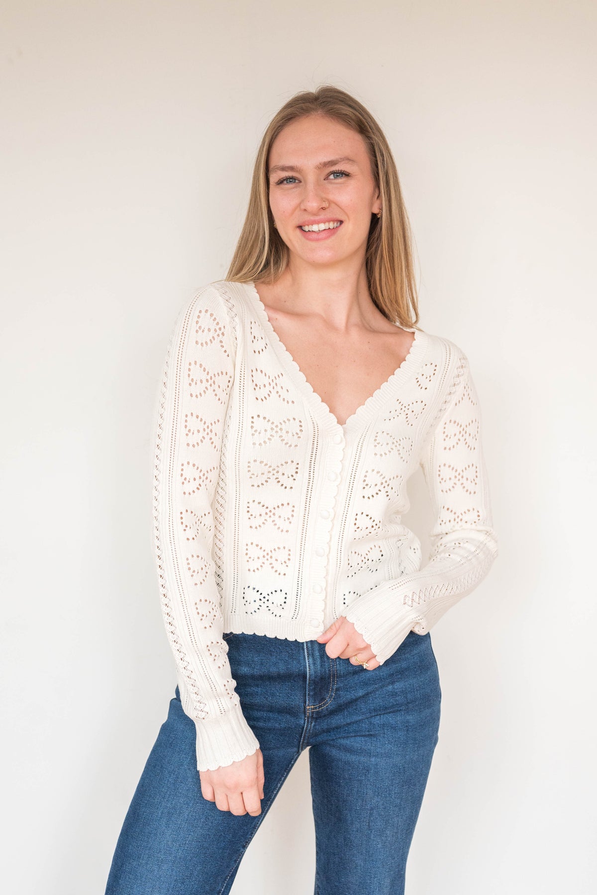 Delicate pointelle stitching and a lightweight EcoVero yarn give this cardigan a feminine, elevated feel. The button-front design fits close to the body, so you can wear it as a top or layer it over a cami for a soft, refined look.