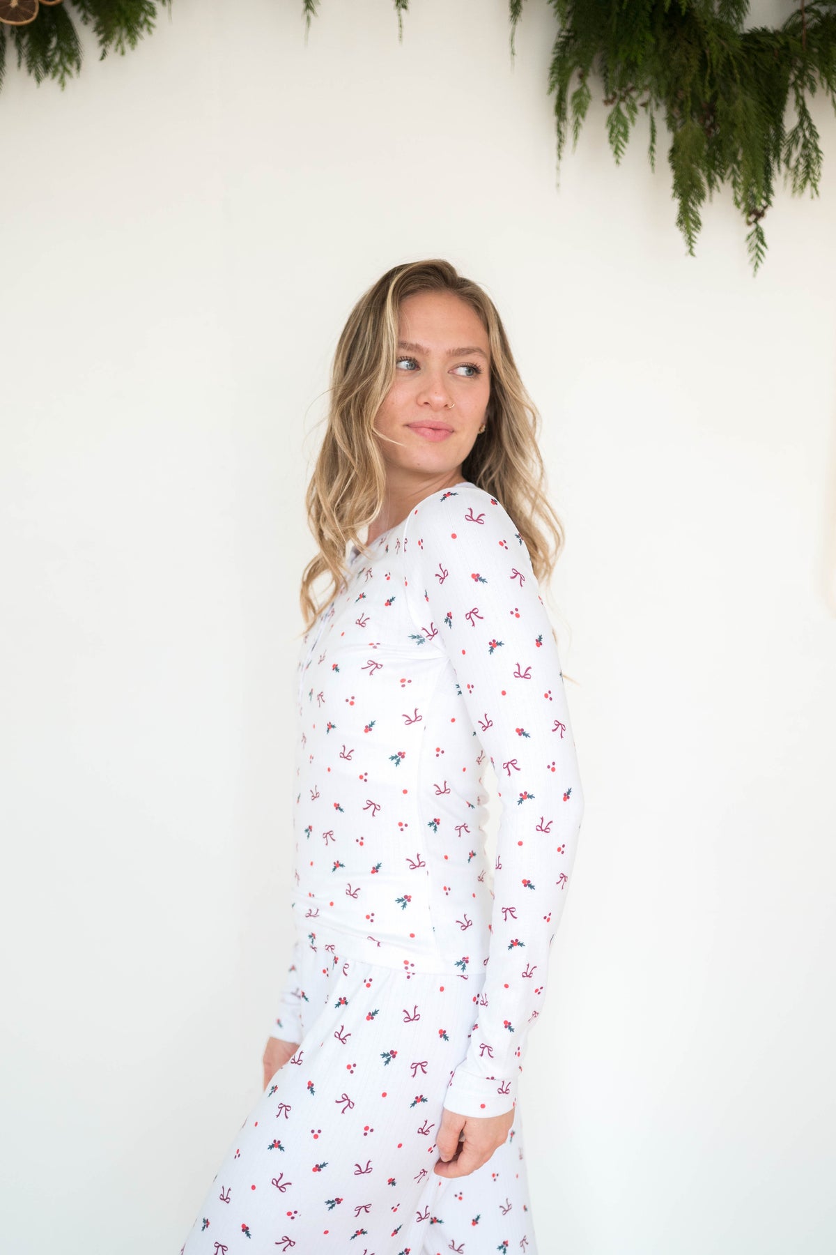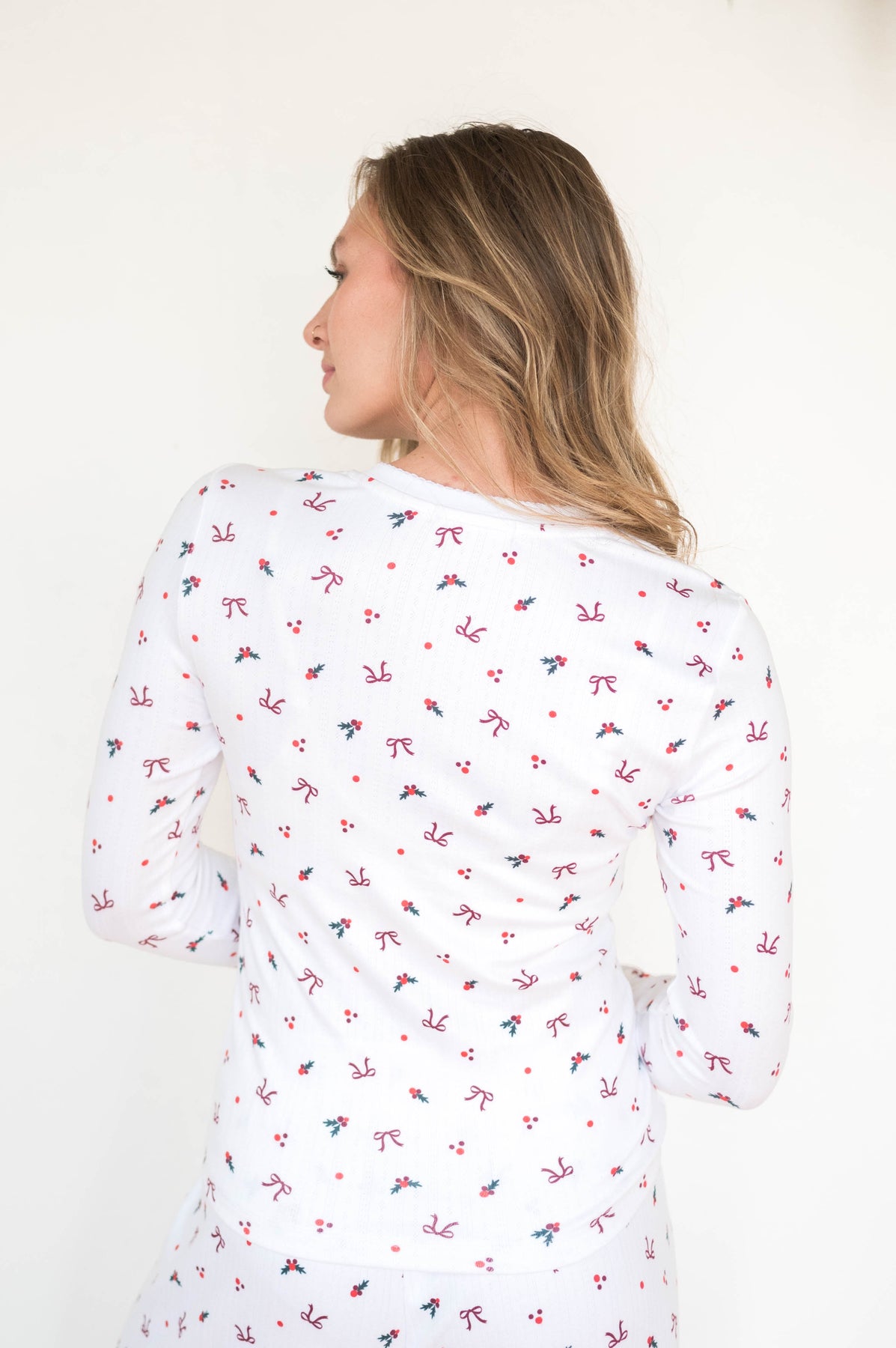 Designed in the same silky-soft pointelle, this short sleeve henley is fitted and versatile. Style it with matching bottoms or denim for a cozy take on everyday dressing.
