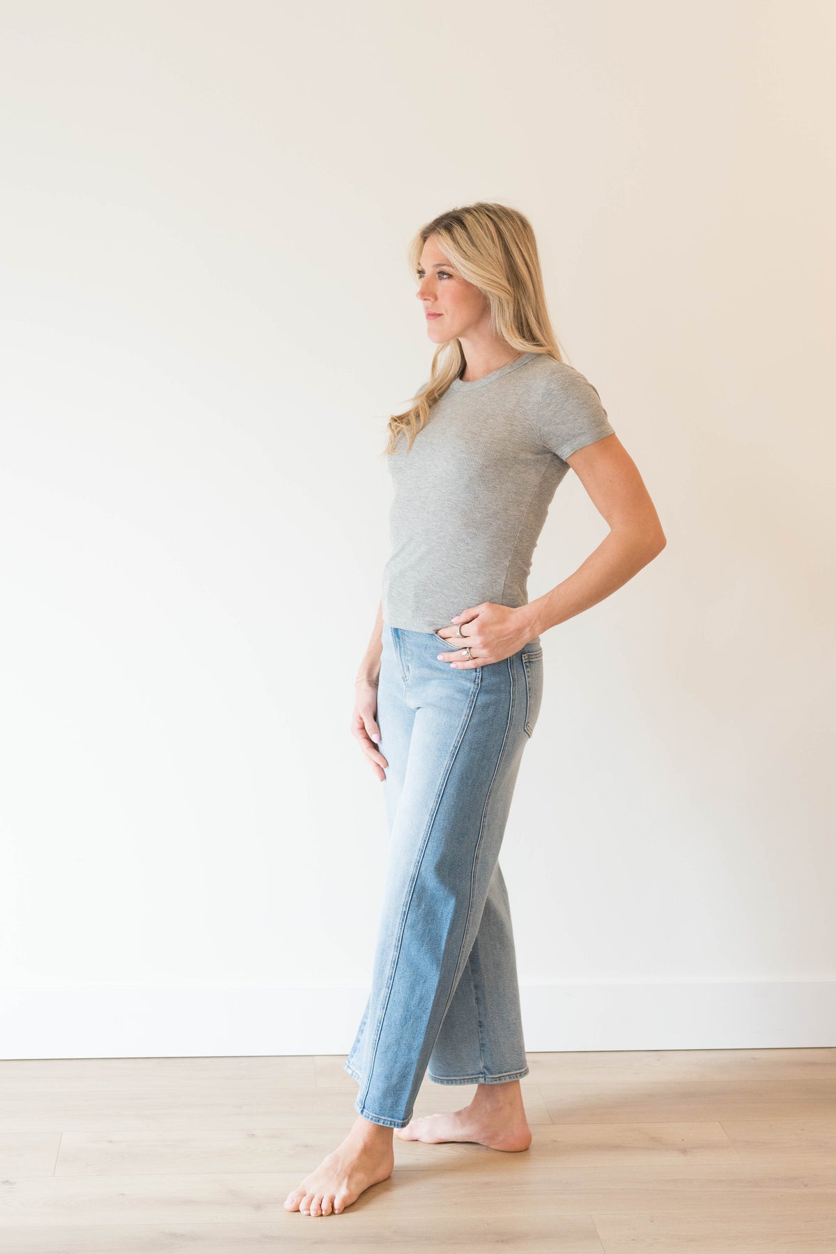 The effortless, everyday classic. Made from an ultra-soft rib with a lightweight, comfortable feel. The Kota is designed with a classic crew neckline and waist-length cut. It has a slim fit that sits smoothly and close to the body. A modern baby tee built for constant wear.