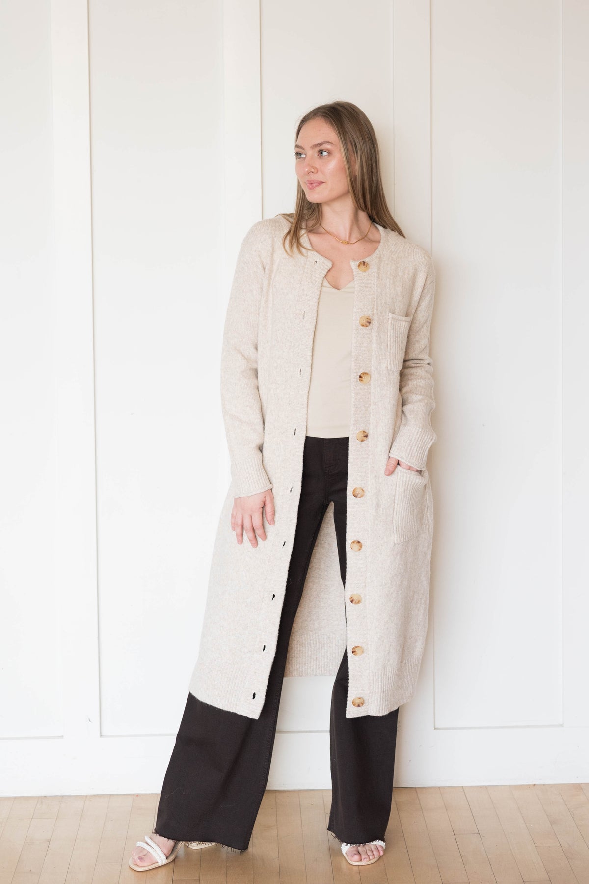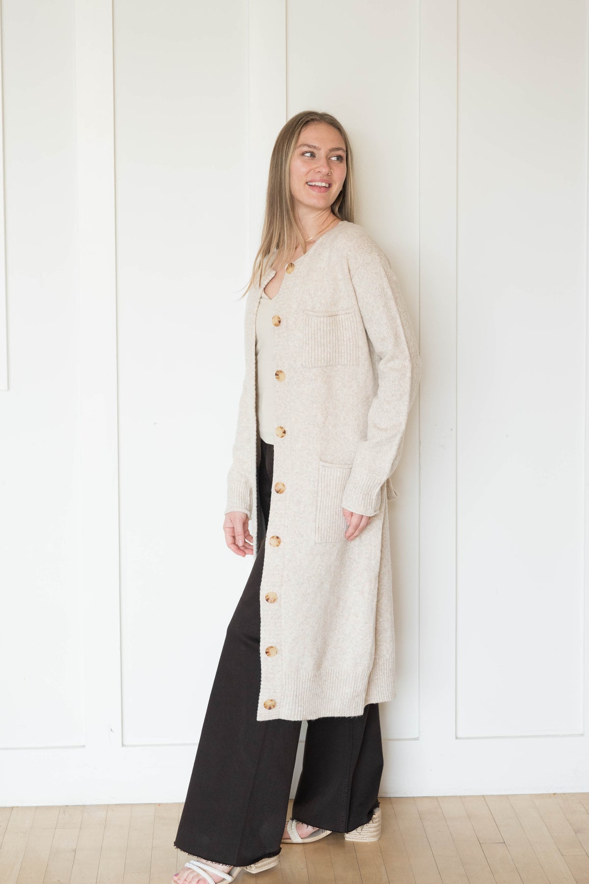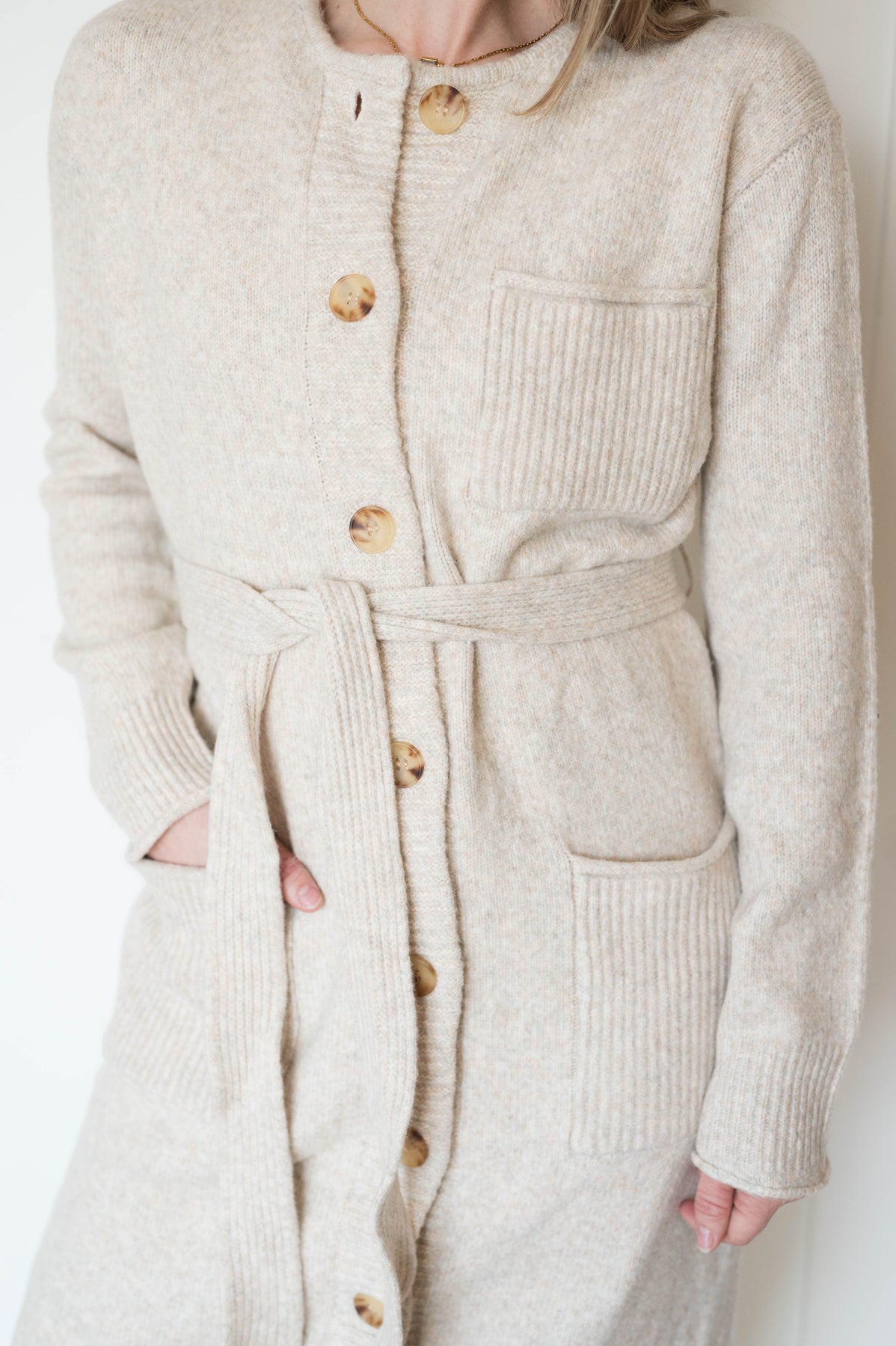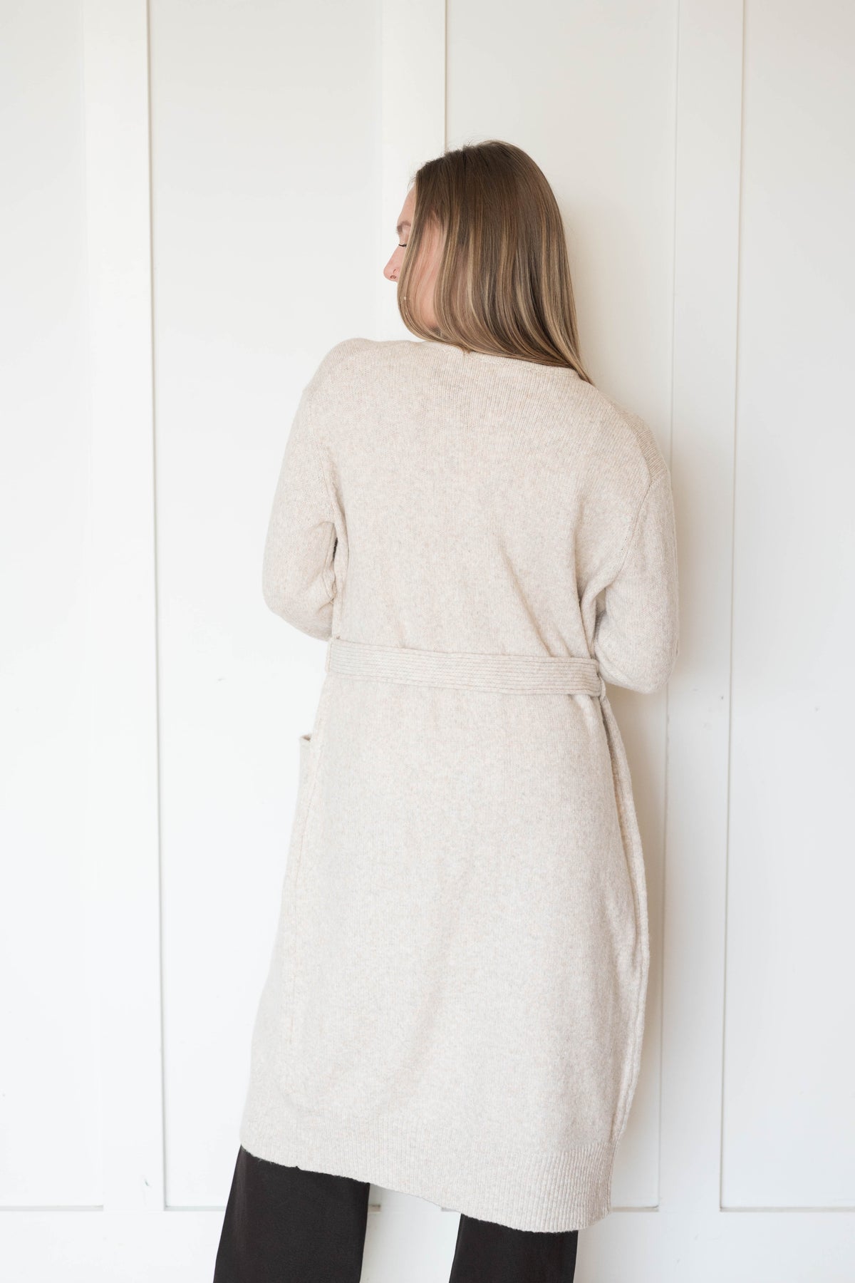 Belted longline cardigan