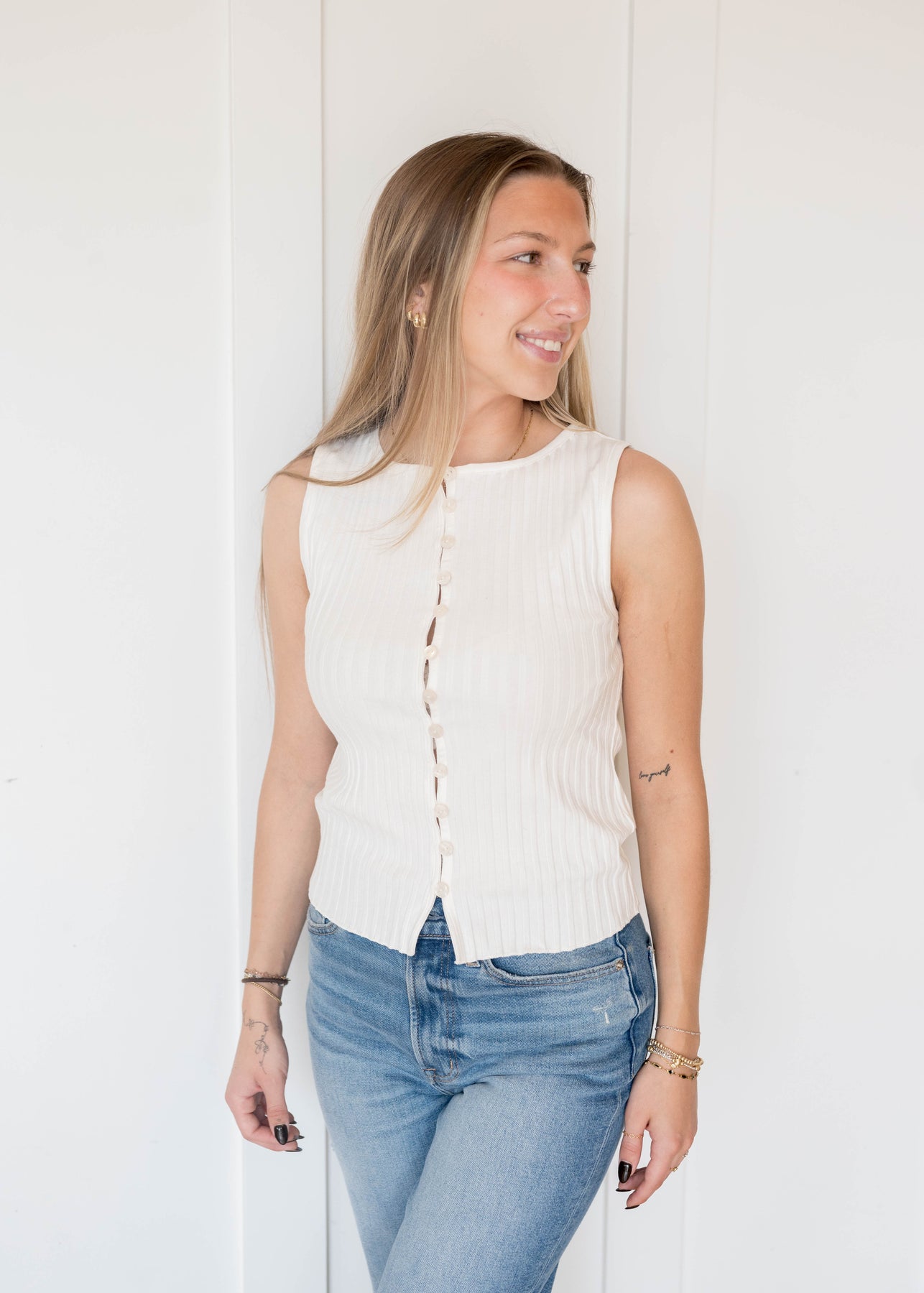 Fit: Slim, relaxed fit Features: Ribbed knit fabrication with a stretchy feel, scoop-neckline, button-front closures Why We ❤ It: This classic vest can be layered up or down for easy outfitting.